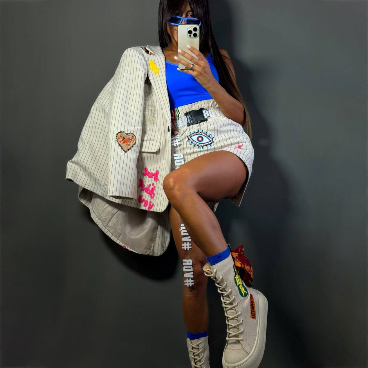 Découvrez notre blazer oversized à la mode, orné d'un design de broderie unique et créatif. Ce blazer allie élégance classique et touches modernes, ajoutant une certaine allure à chaque tenue.