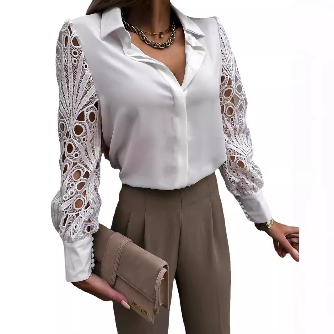 - Design : Col classique avec patte de boutonnage et manches en dentelle raffinées pour une touche moderne.