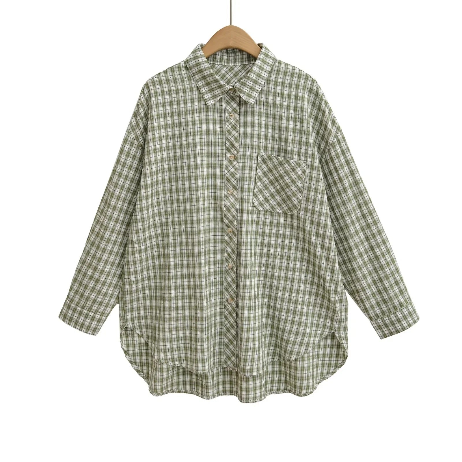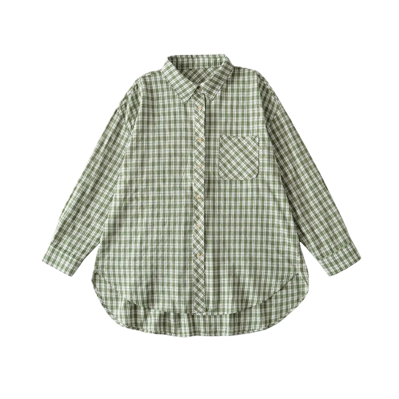 Découvrez notre chemisier à carreaux pour femmes élégant, qui allie style et confort. Ce chemisier en coton de haute qualité se caractérise par un motif à carreaux unique dans des tons de vert doux, à la fois moderne et intemporel.