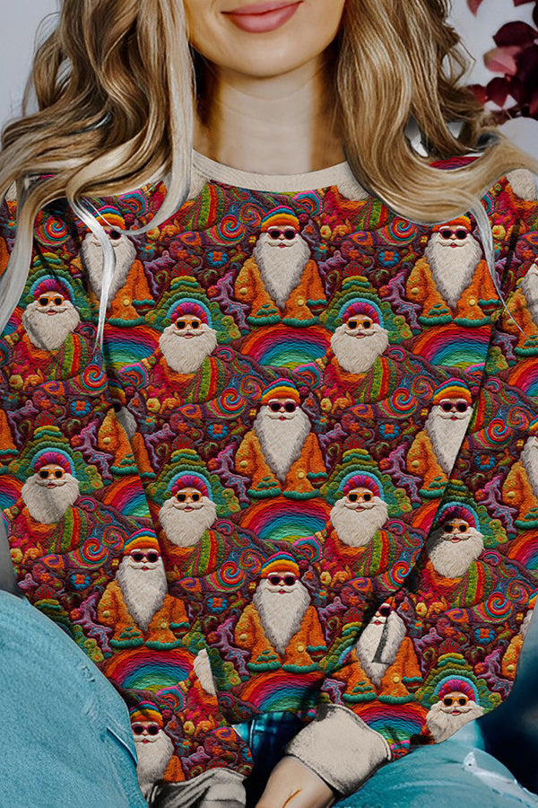 Chic und Stil | Printed Christmas Contrast Color Long Sleeve Pullover Sweatshirt