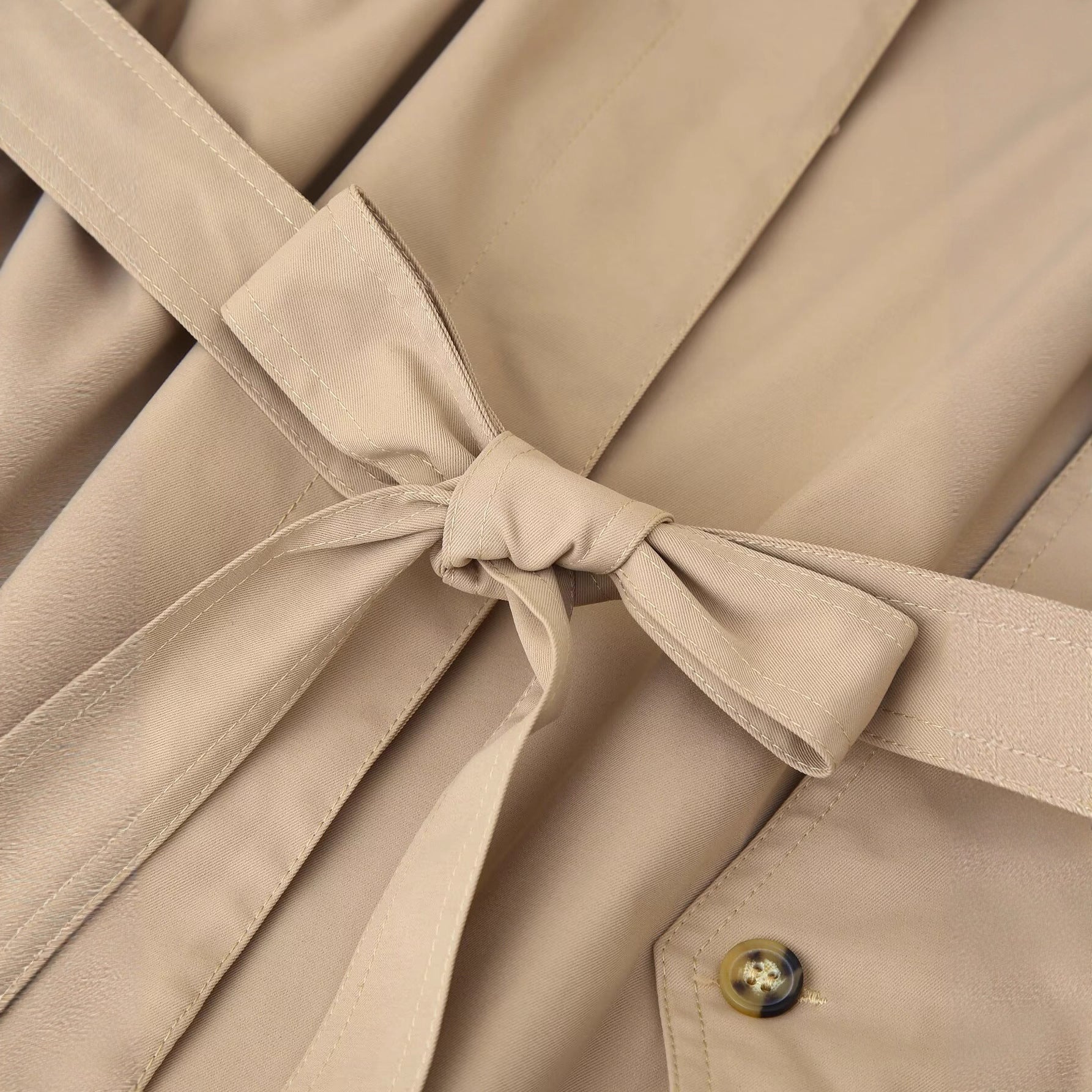 • Design: Classic trench coat design with a fitted cut and drawstring for a personalized fit.