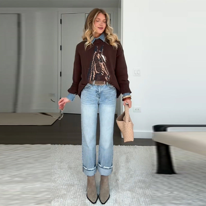 Women's sweatshirt with artistic animal pattern and relaxed fit Chic and Style