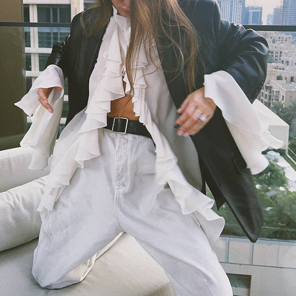 Chemisier à volants pour femmes avec des manches évasées Chic und Stil