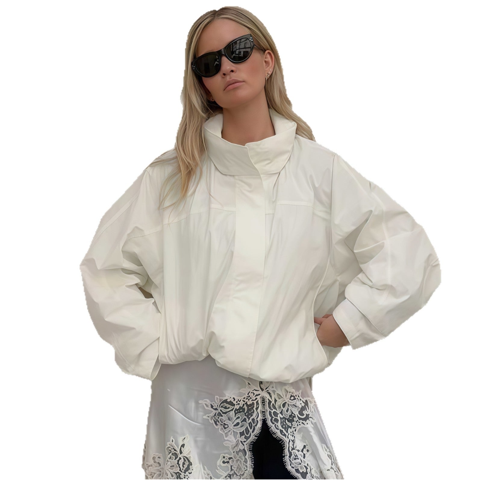Functional oversized jacket for ladies with high collar and innovative design Chic and Style