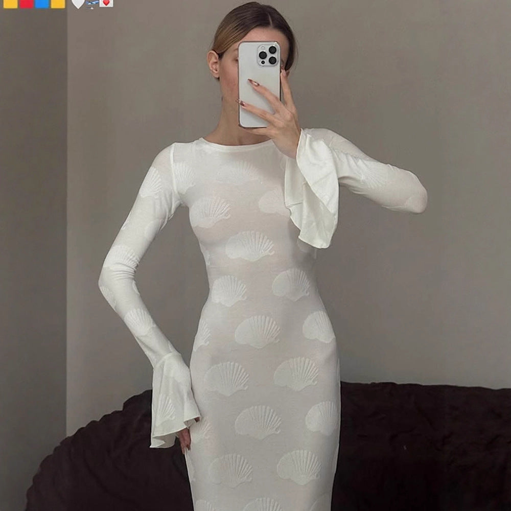 Dames Robe Maxi Élégante avec Manches Évasées et Design Floral Chic und Stil