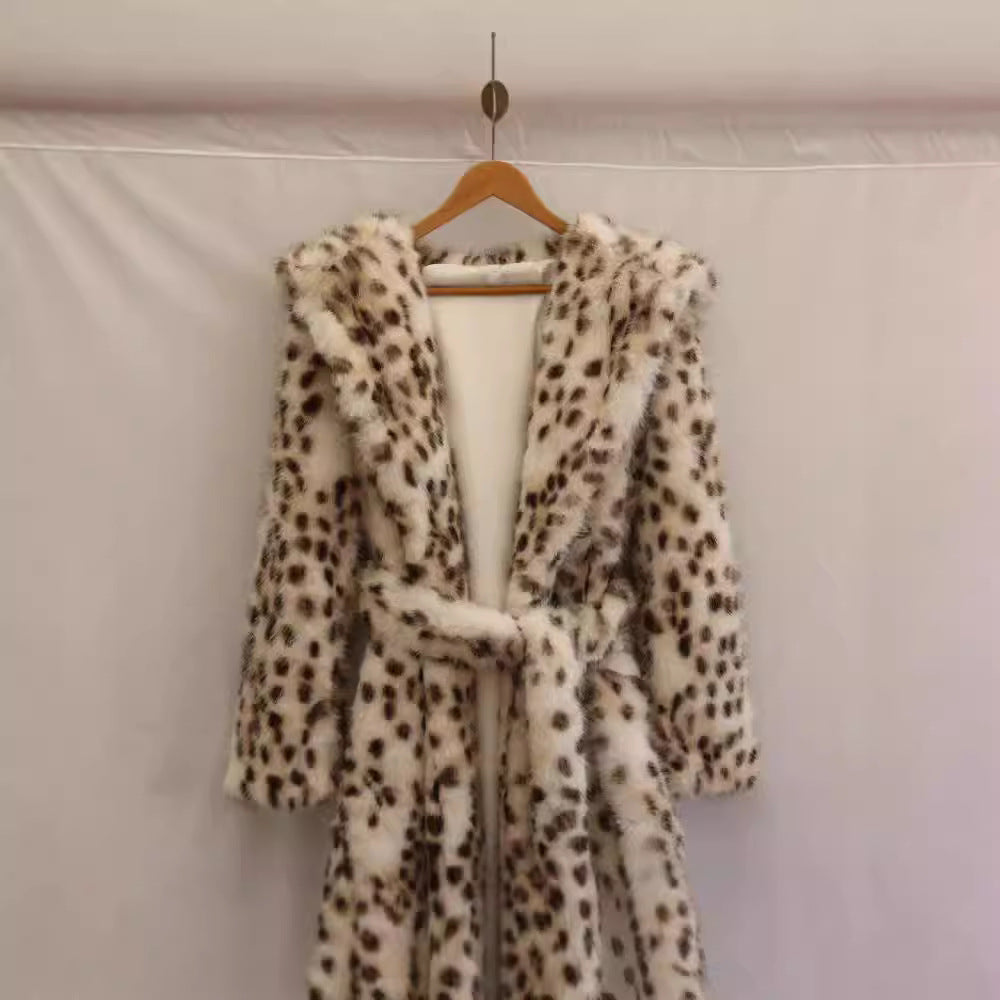 Chic and Style Women's Polar Bathrobe with Hood and Leopard Print