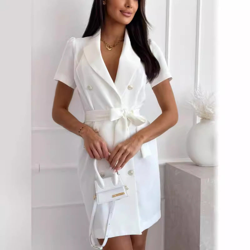 Chic and Stylish Women's Double-Breasted Fitted Shirt Dress