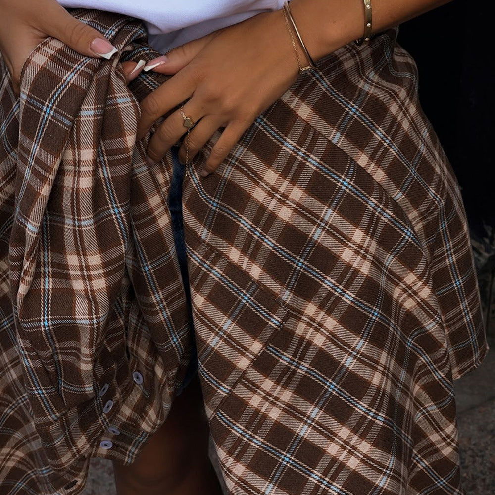 - Design : Motif à carreaux classique dans des tons de terre chaleureux, s'adaptant à différentes tenues.