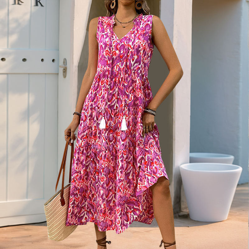 Découvrez la combinaison parfaite de confort et de style avec notre Robe Maxi Étroite Bohémienne. Conçue pour ceux qui apprécient la mode exquise, cette robe se distingue par un imprimé vibrant qui capture l'esprit insouciant de l'été.