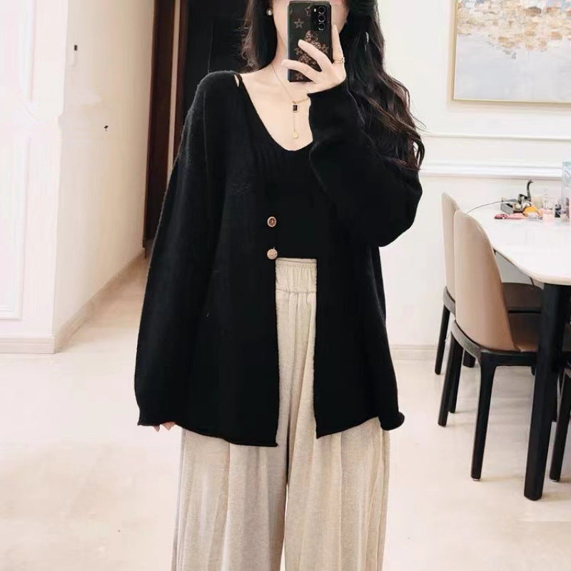 Cardigan en tricot décontracté pour femmes avec une fine texture et de gros boutons Chic und Stil