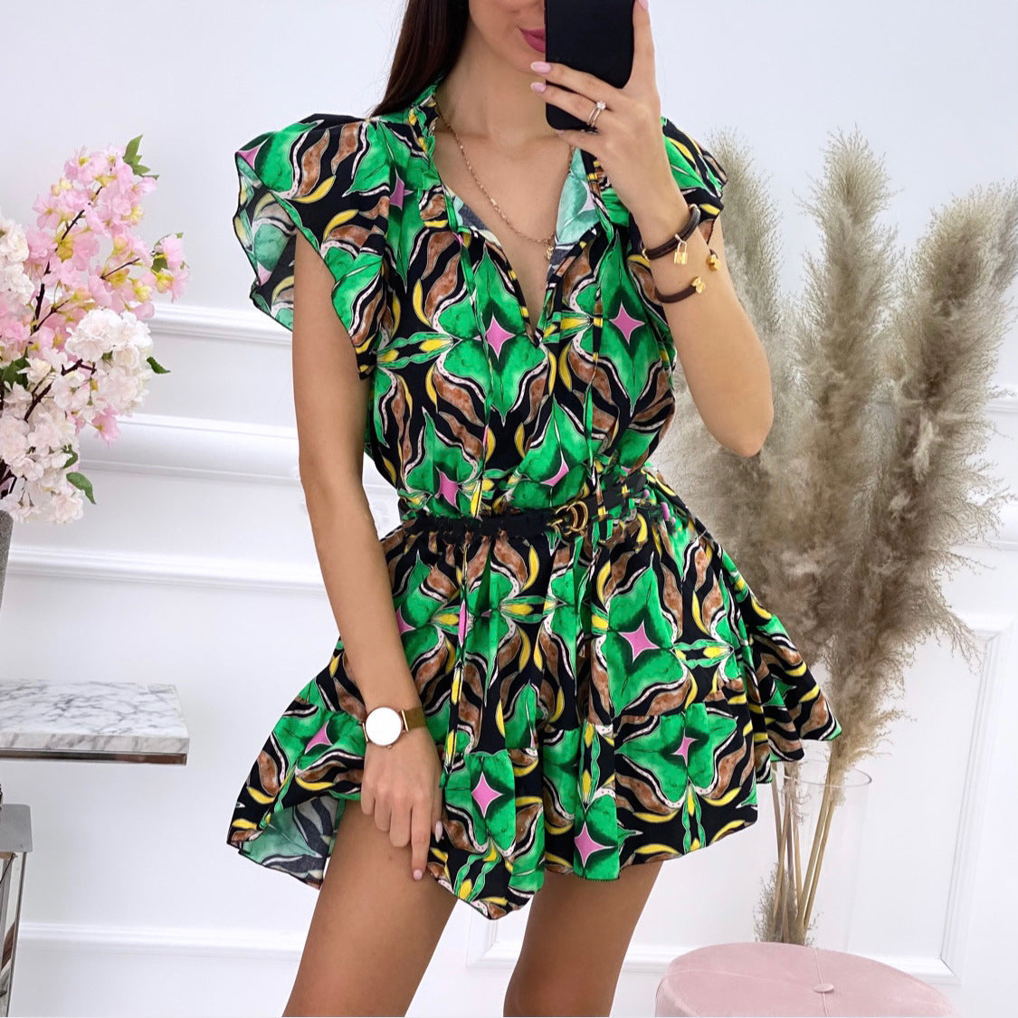 - Chic shirt dress silhouette with a playful ruffled hem