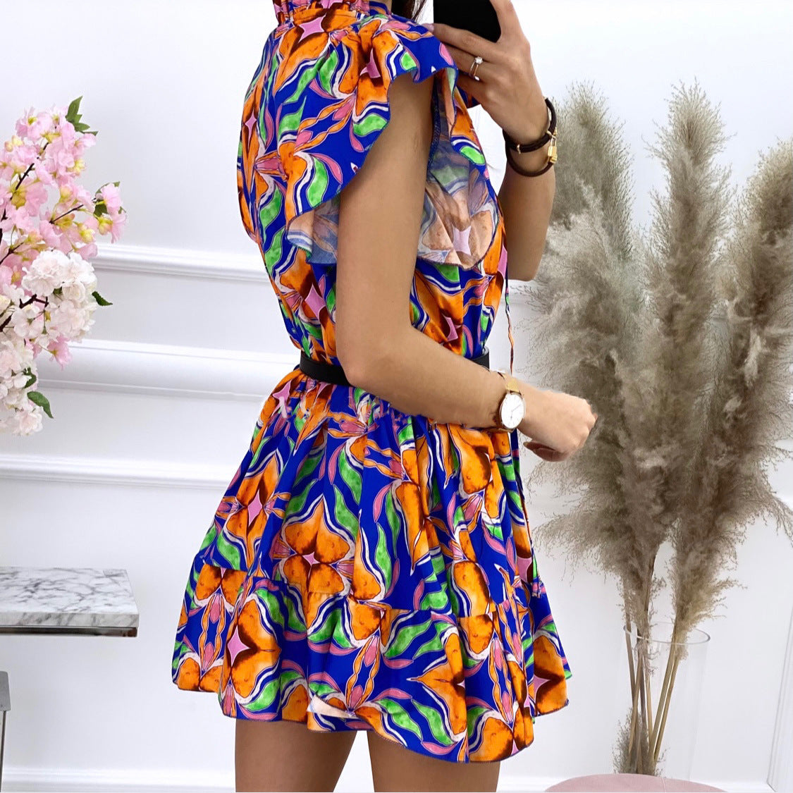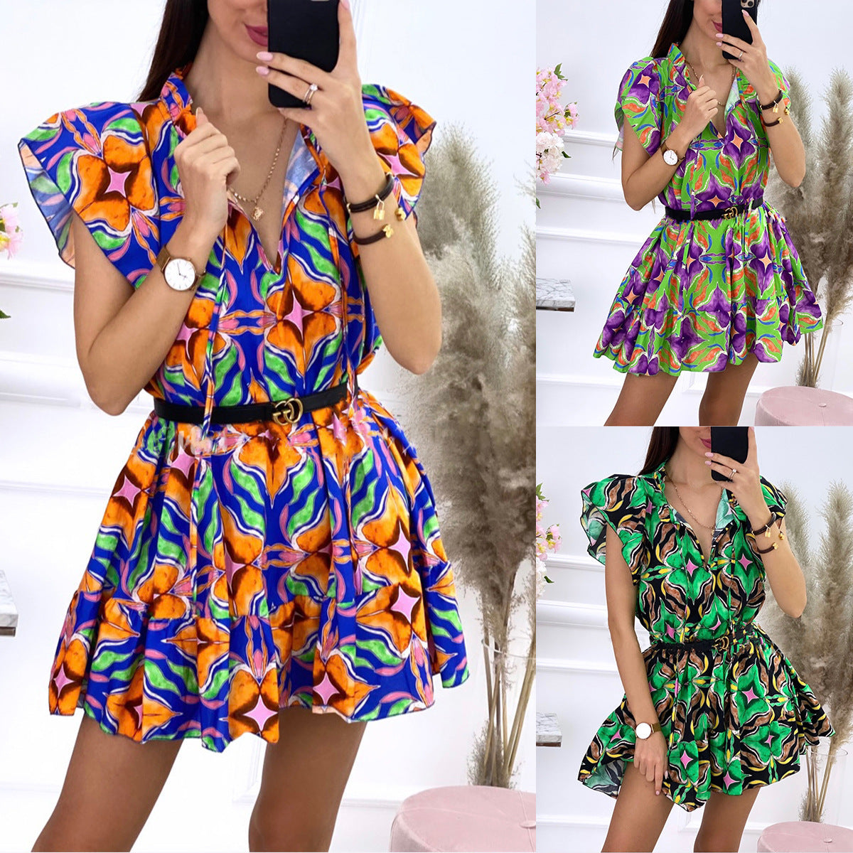 Discover the vibrant charm of our floral print shirt dress, perfect for any occasion. This elegant piece features a striking multicolor floral pattern, combining bold patterns with a stylish design. Made from lightweight, breathable fabric, it offers comfort and keeps you on trend.