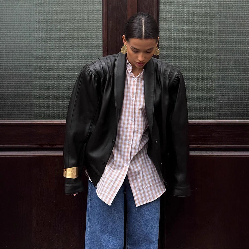 Veste blazer en cuir pour femmes avec manches bouffantes Chic & Stil
