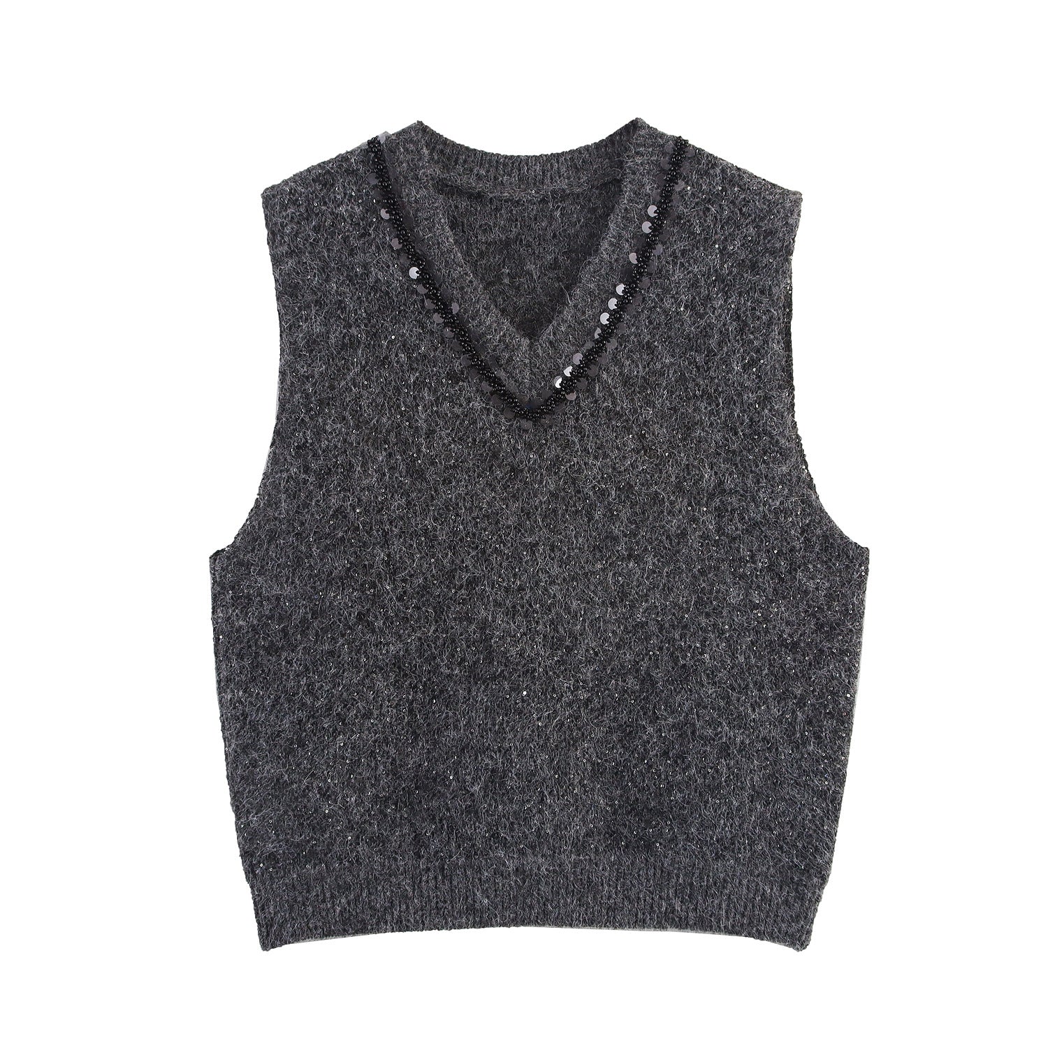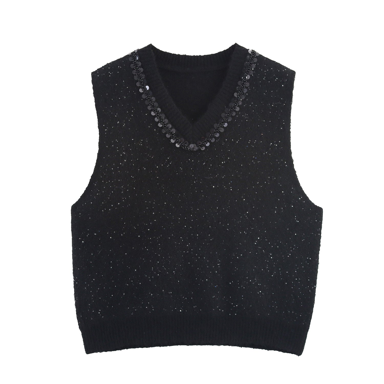Dames élégant pull en tricot sans manches avec des appliqués scintillants Chic und Stil