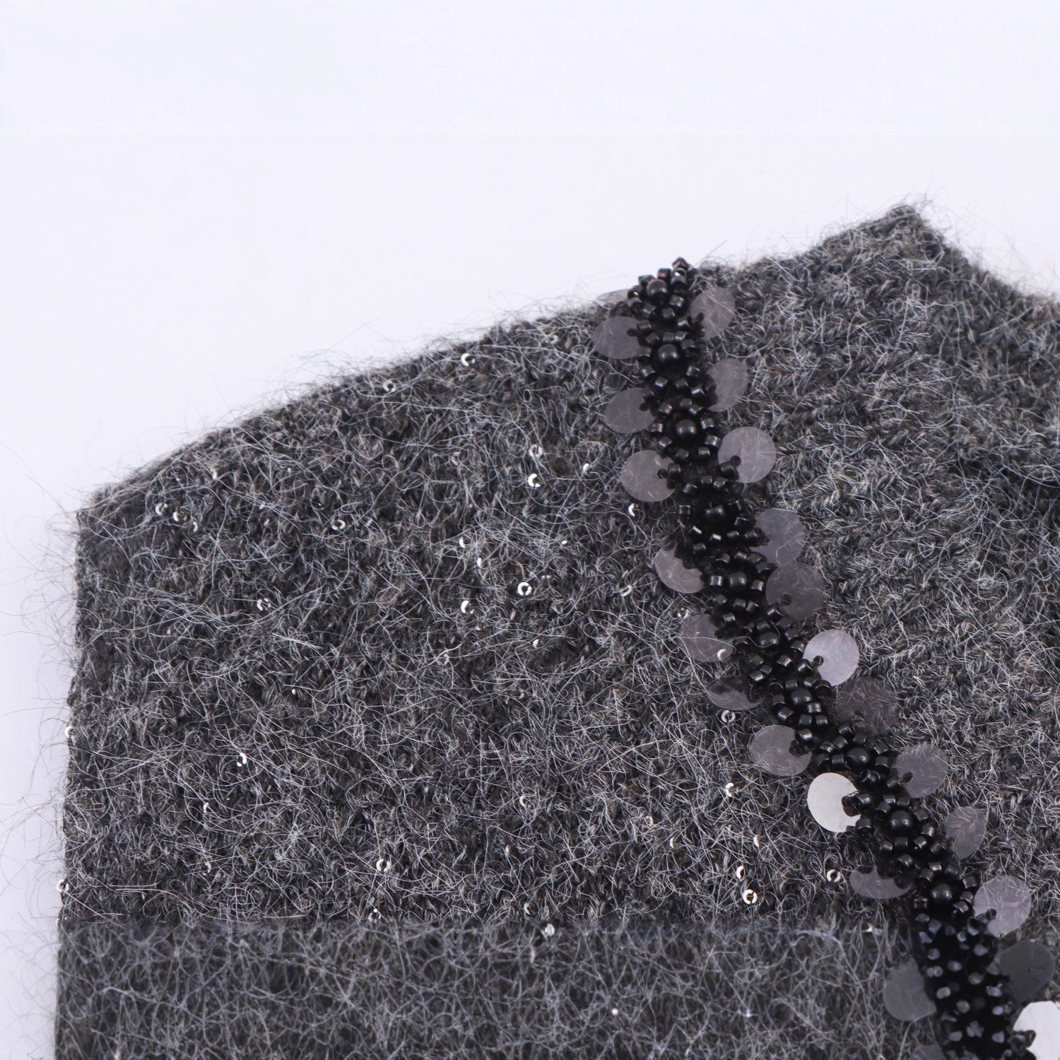 - Applications scintillantes : Le pull est orné de détails brillants qui lui apportent une touche glamour.