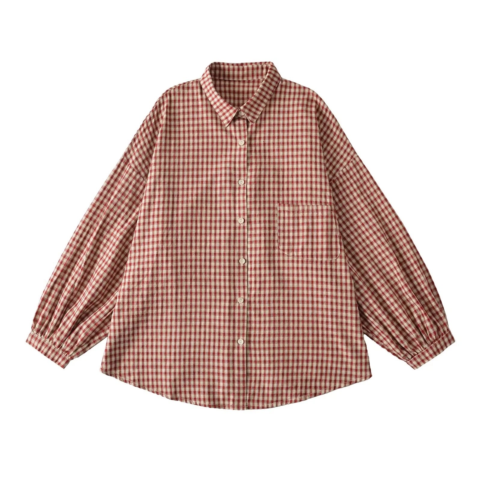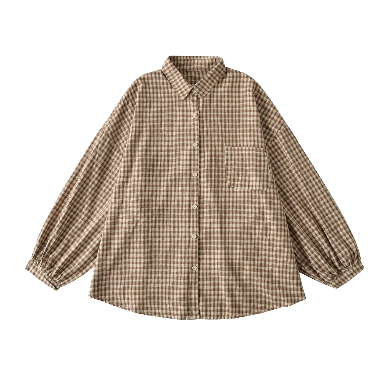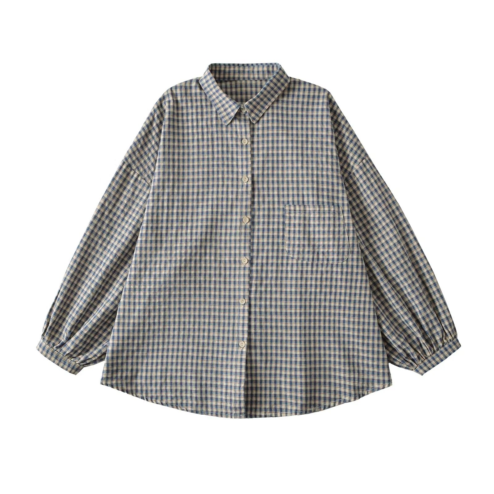 Blouse à carreaux décontractée pour femmes avec épaules dénudées et grands boutons Chic und Stil