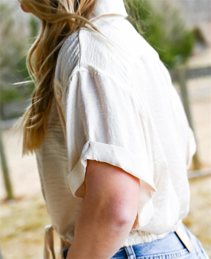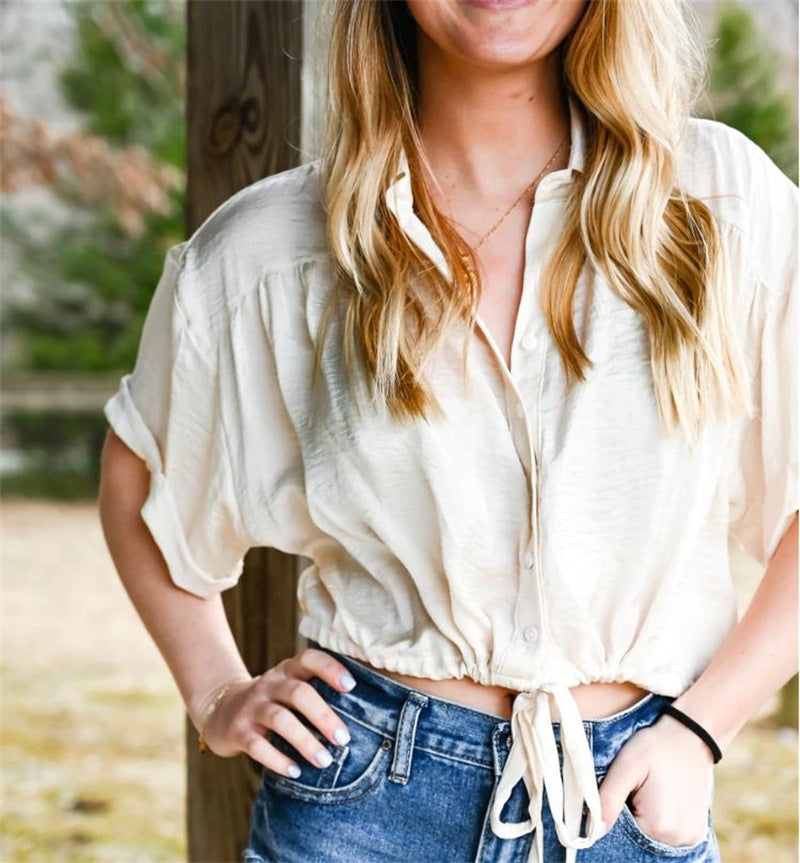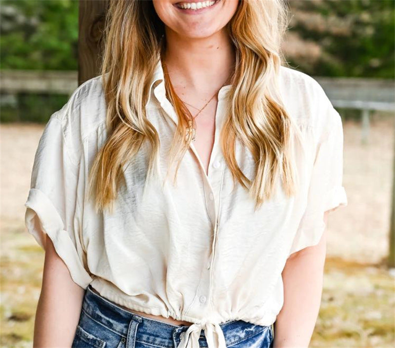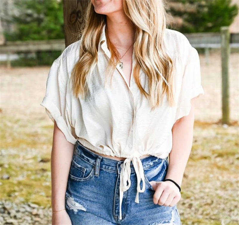 Chemisier décontracté pour femme avec manches raccourcies et cordon de serrage Chic und Stil