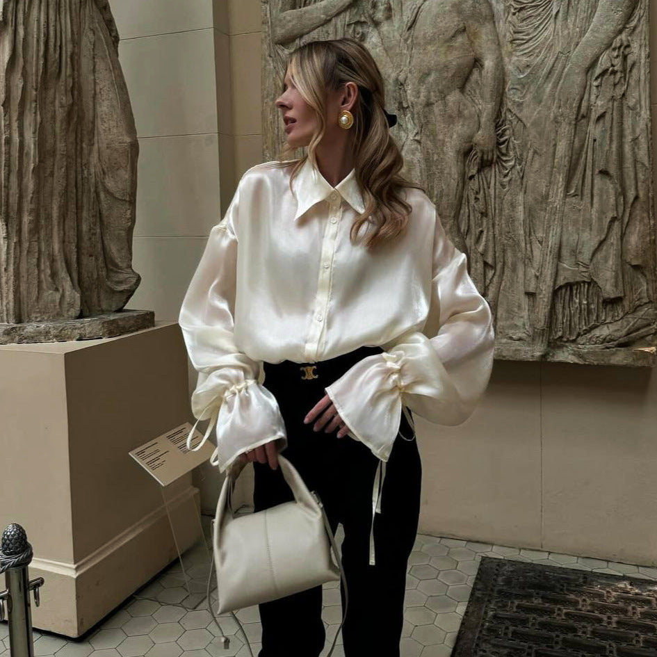 Chemisier en satin élégant pour femmes, à manches volumineuses et détails à nouer Chic und Stil