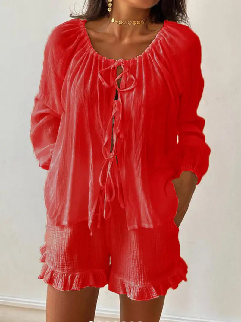 - Shorts : Avec une coupe ample et des volants ludiques au bas pour une touche féminine.