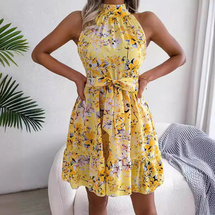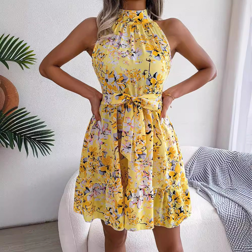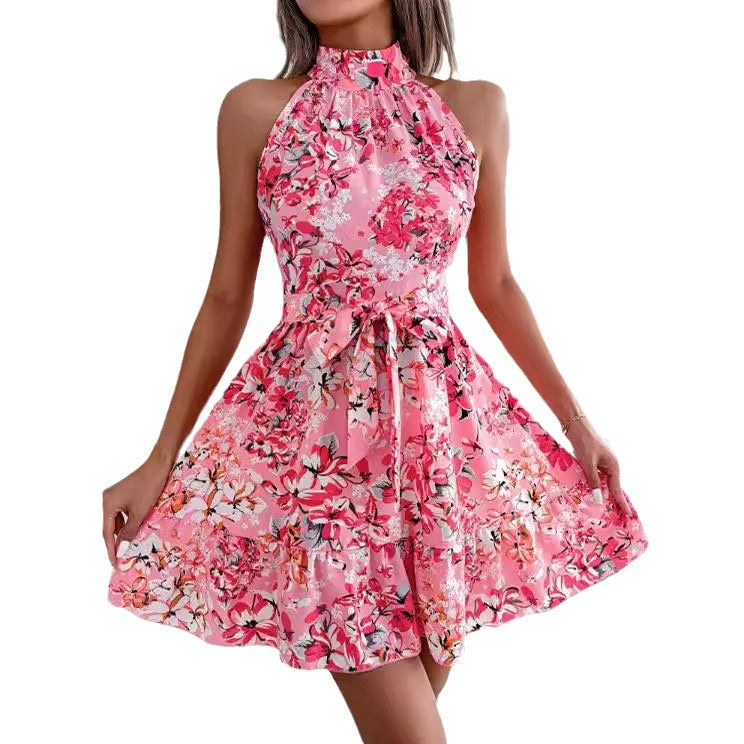 Chic and Stylish Women's Floral Backless A-Line Dress