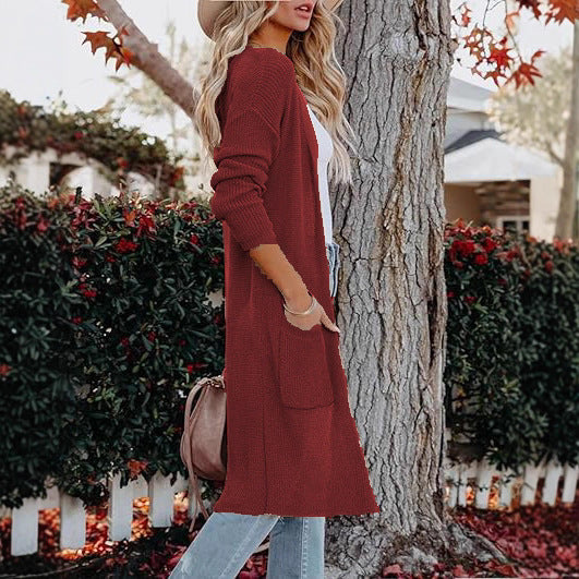 Cardigan long pour femme en tricot avec poches ouvertes et design en fines côtes Chic und Stil