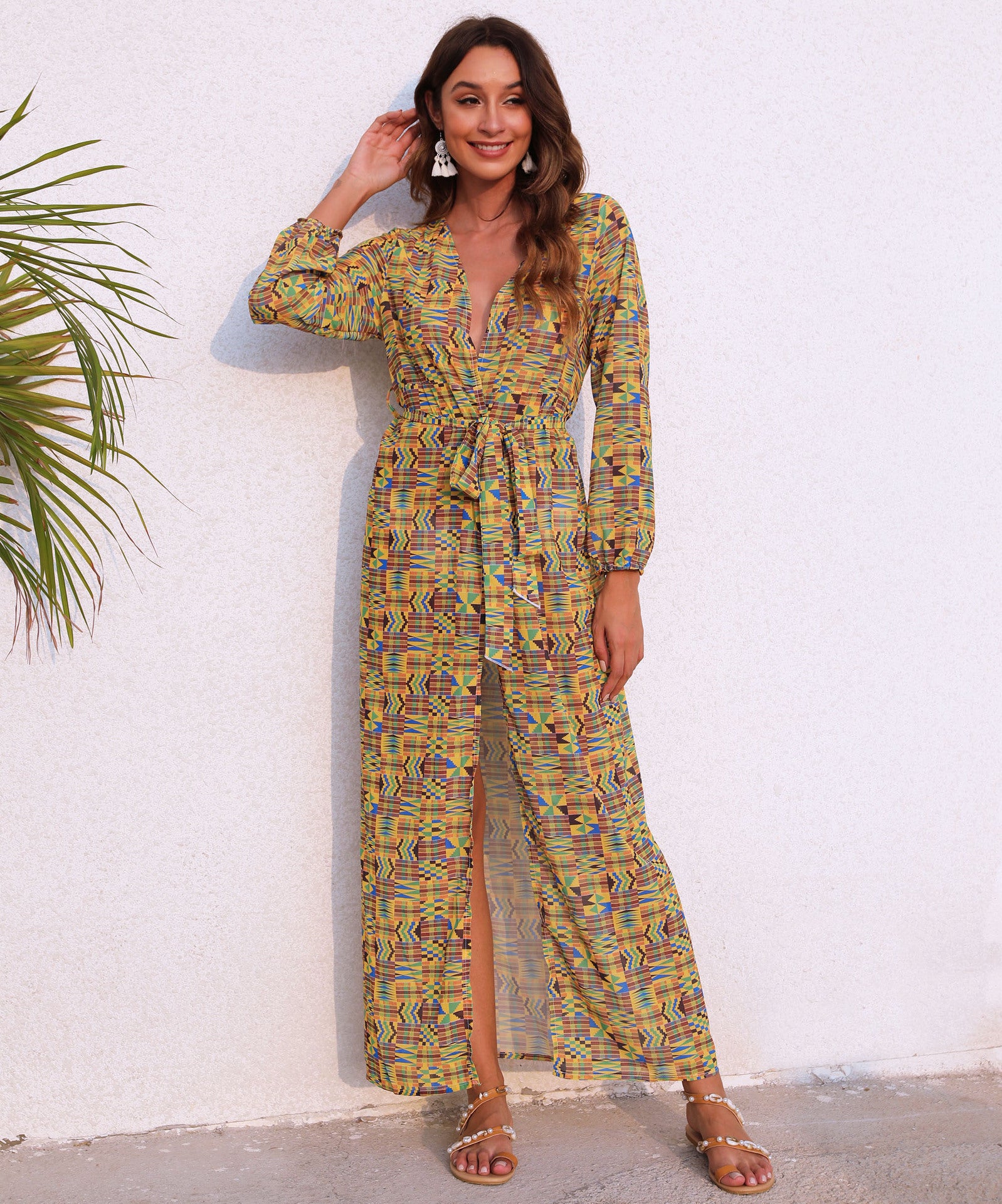 Entrez dans l'élégance estivale avec notre robe maxi à manches longues pour femmes de Chic und Stil. Ce magnifique modèle est parfait pour les visites à la plage, les fêtes au bord de la piscine ou un brunch en plein air chic. Confectionnée en tissu léger et respirant, elle offre du confort tout en faisant une déclaration de mode audacieuse.