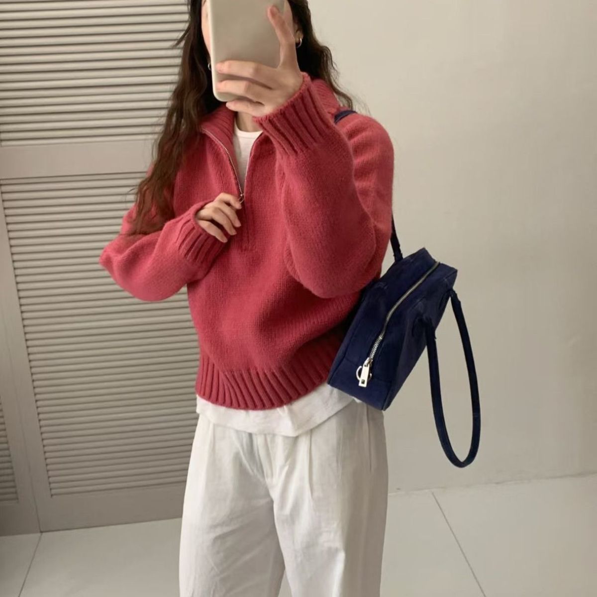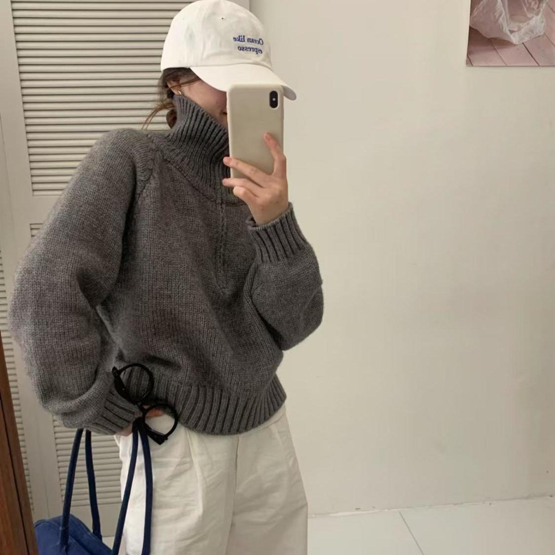 Pull tricot féminin à col montant et fermeture éclair Chic & Stil