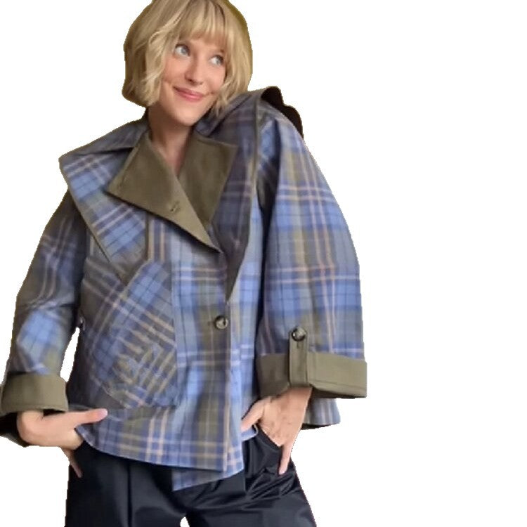 • Motif à Carreaux Unique : Le design élégant à carreaux crée un look unique et le distingue des manteaux conventionnels.