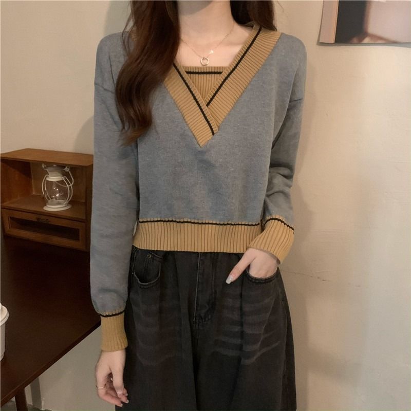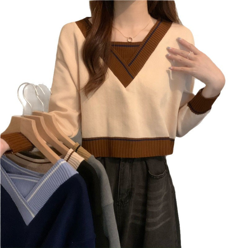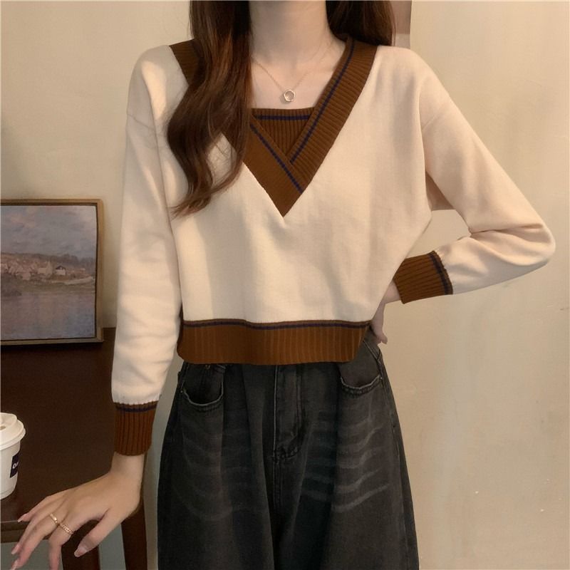 Pull féminin à la mode en V avec détails contrastés Chic & Stil