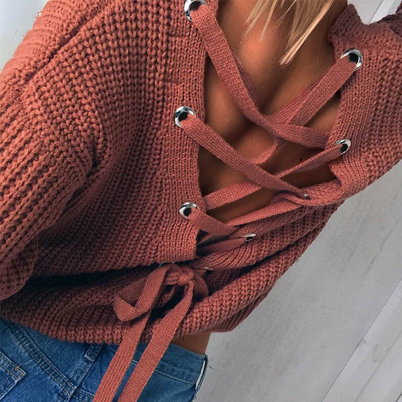 Pull femme avec un design unique à l'arrière et un lacet décoratif Chic und Stil