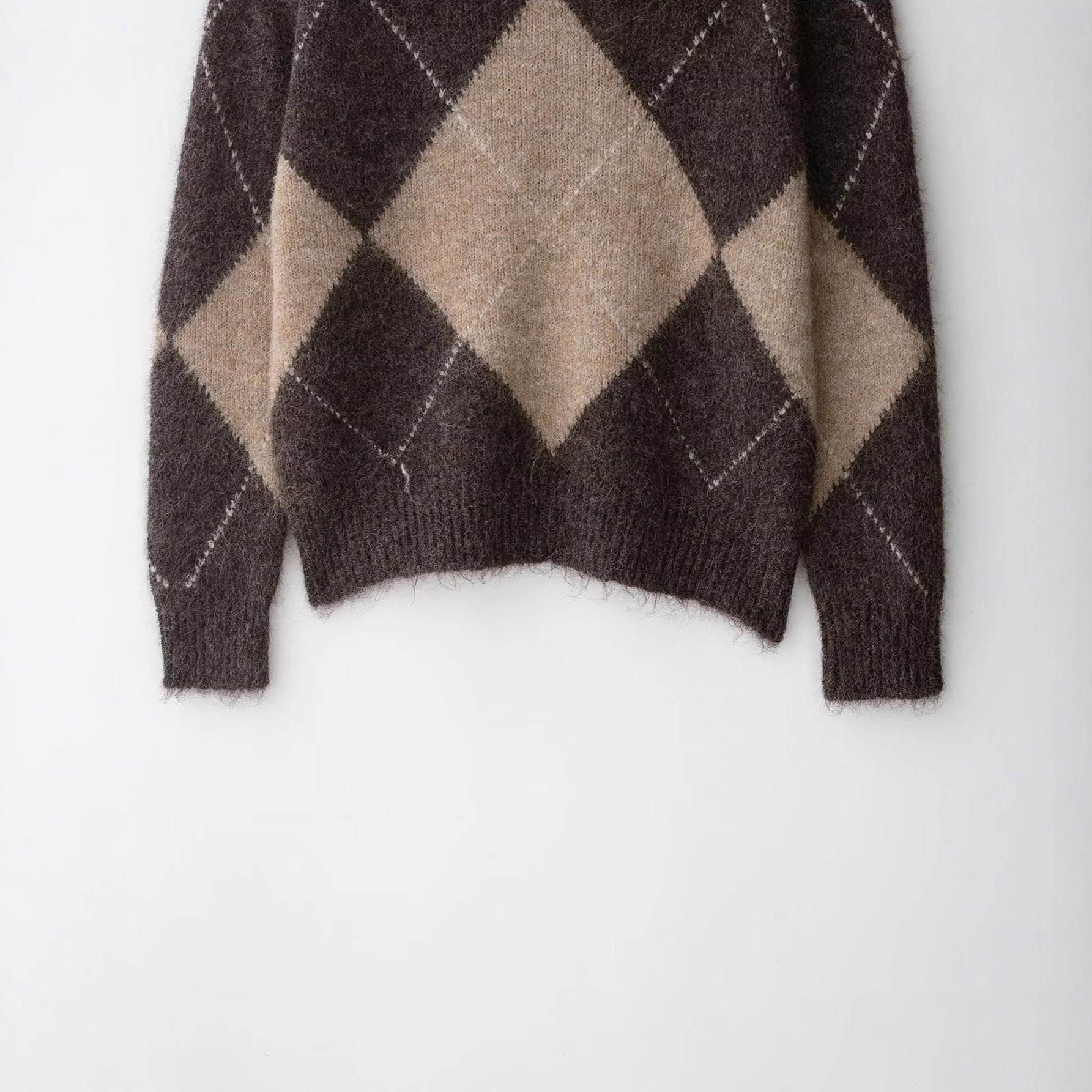 La structure en losanges particulière donne au pull une touche moderne et permet des combinaisons de tenues variées. L'encolure ronde ample procure une sensation de port décontractée et relaxante, tandis que les longues manches complètent le design.