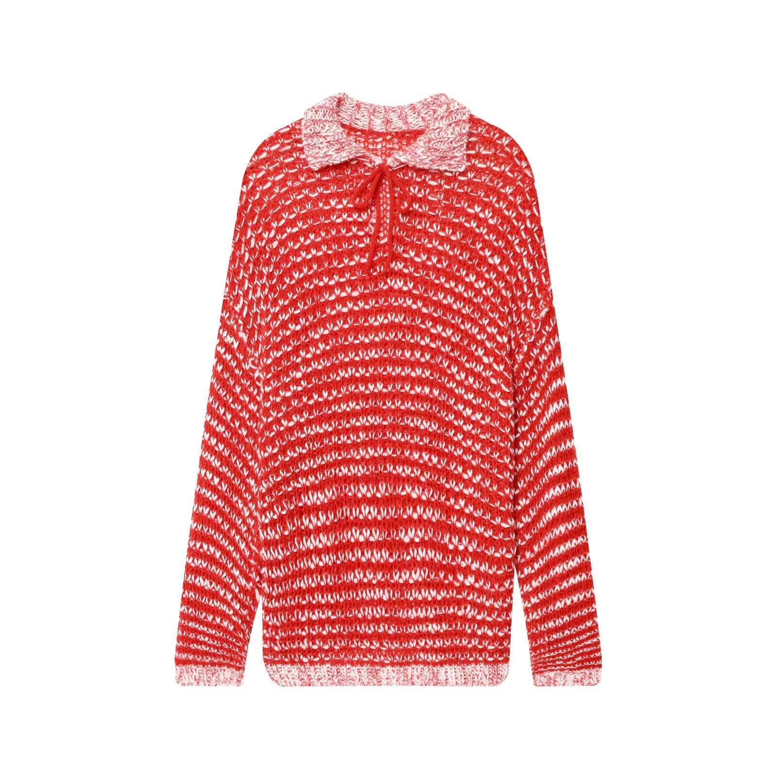 - Design : Le pull se présente dans un motif rayé moderne et est complété par un élégant col montant avec des liens qui lui confèrent une touche particulière.