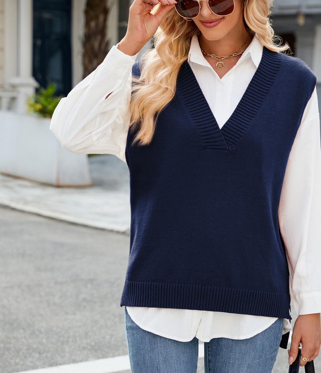 Discover our elegant women's sleeveless knitted sweater, perfect for both casual and chic occasions.