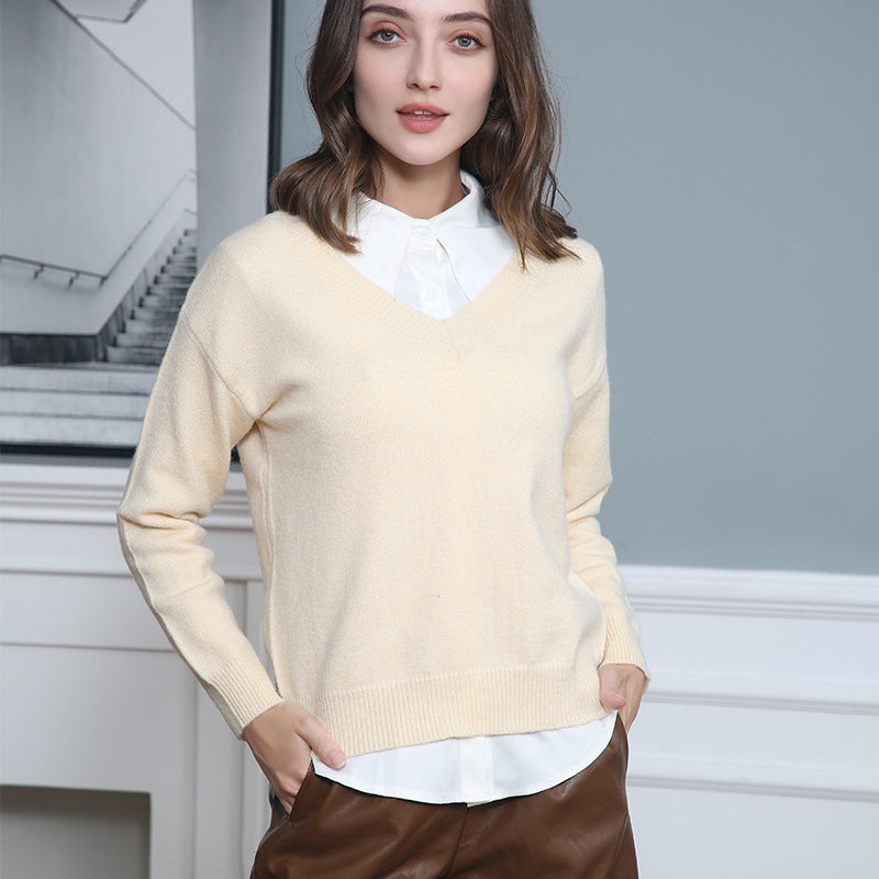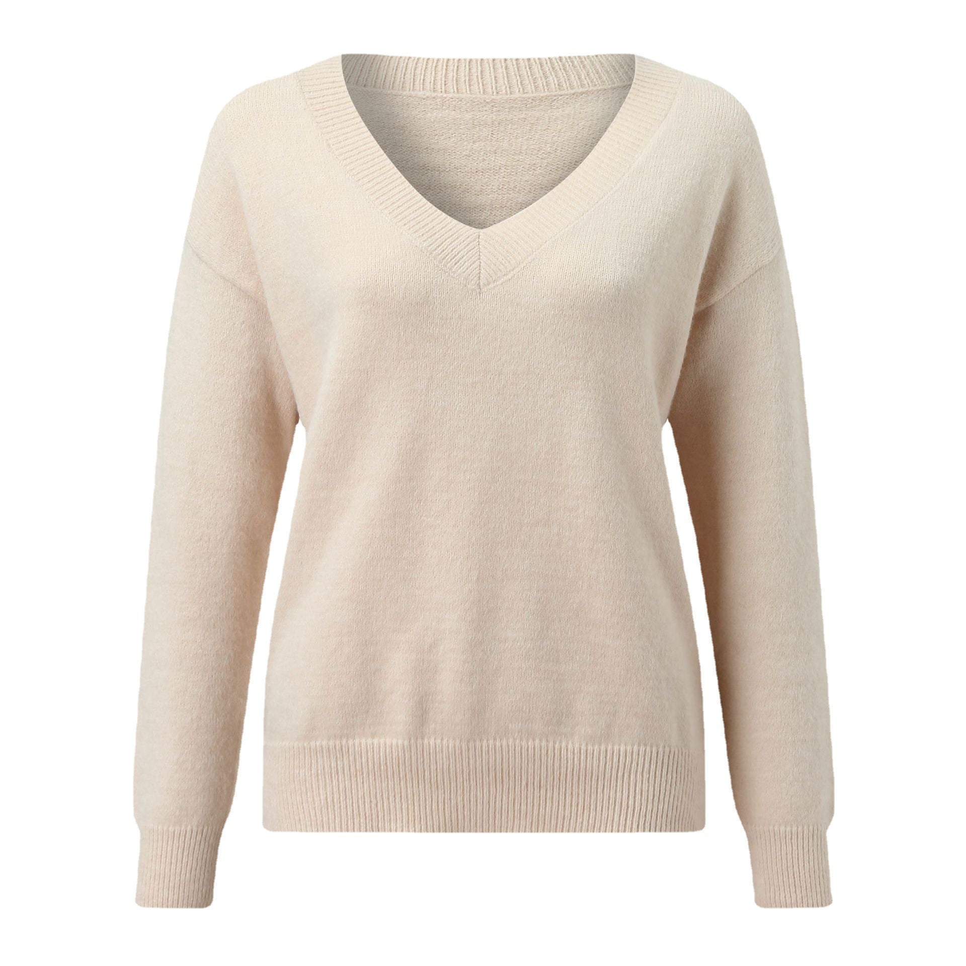 Femmes pull élégant à encolure en V en matière douce avec épaules tombantes Chic und Stil