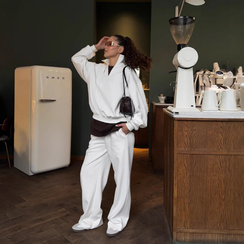 Women's sports sweatshirt with high zipper and casual chic pants