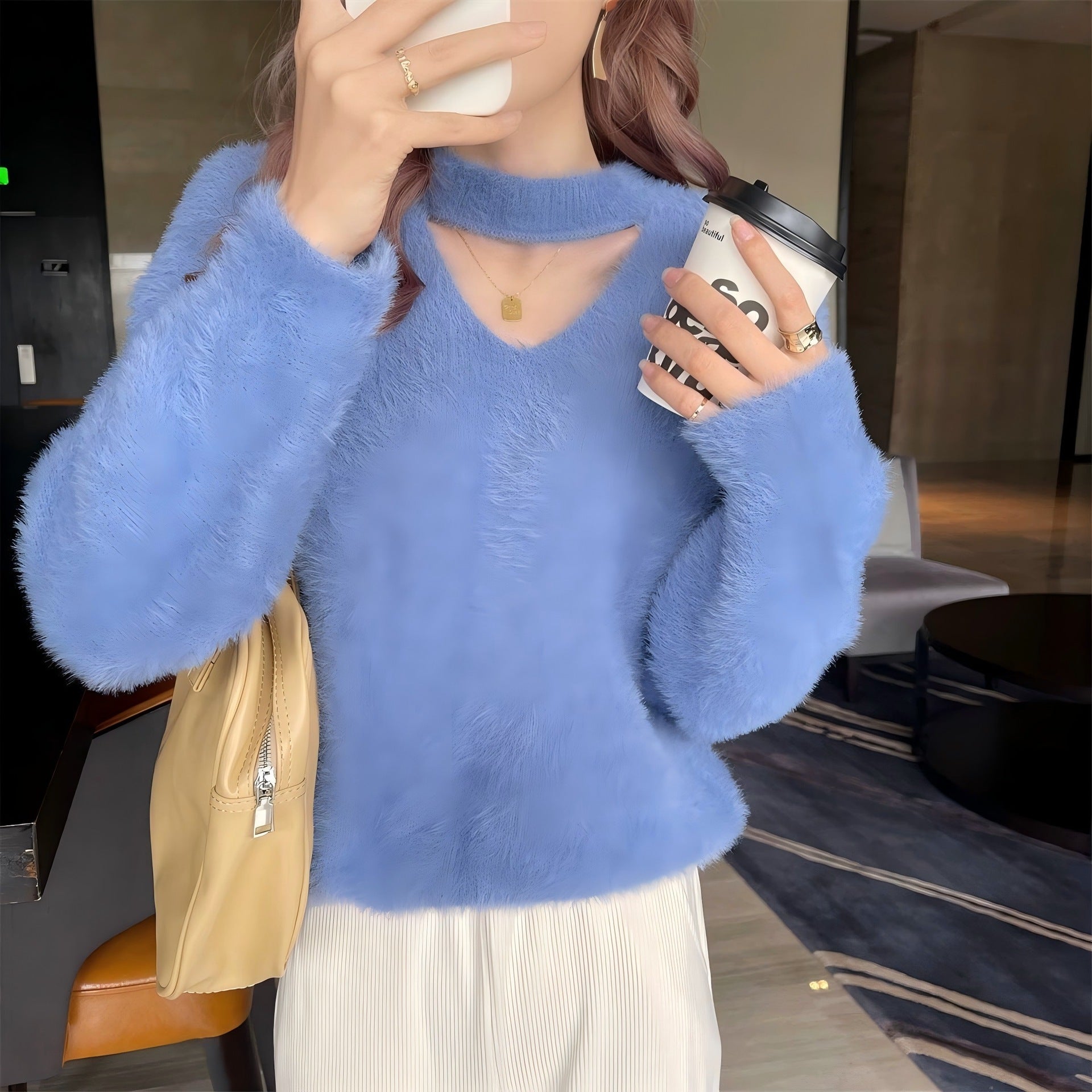 - Col en V unique : Le col en V tendance et le col haut donnent un look élégant.