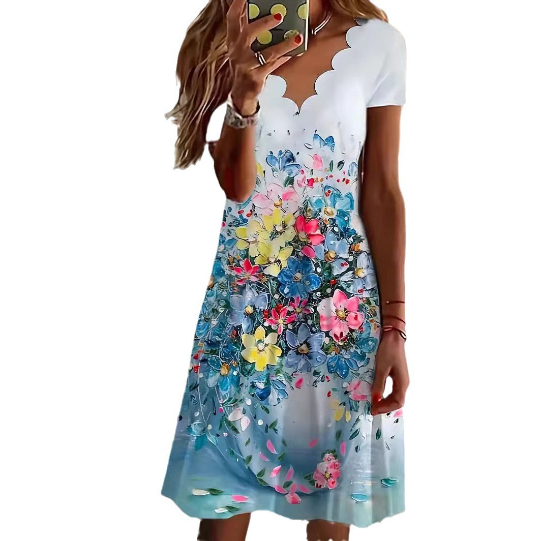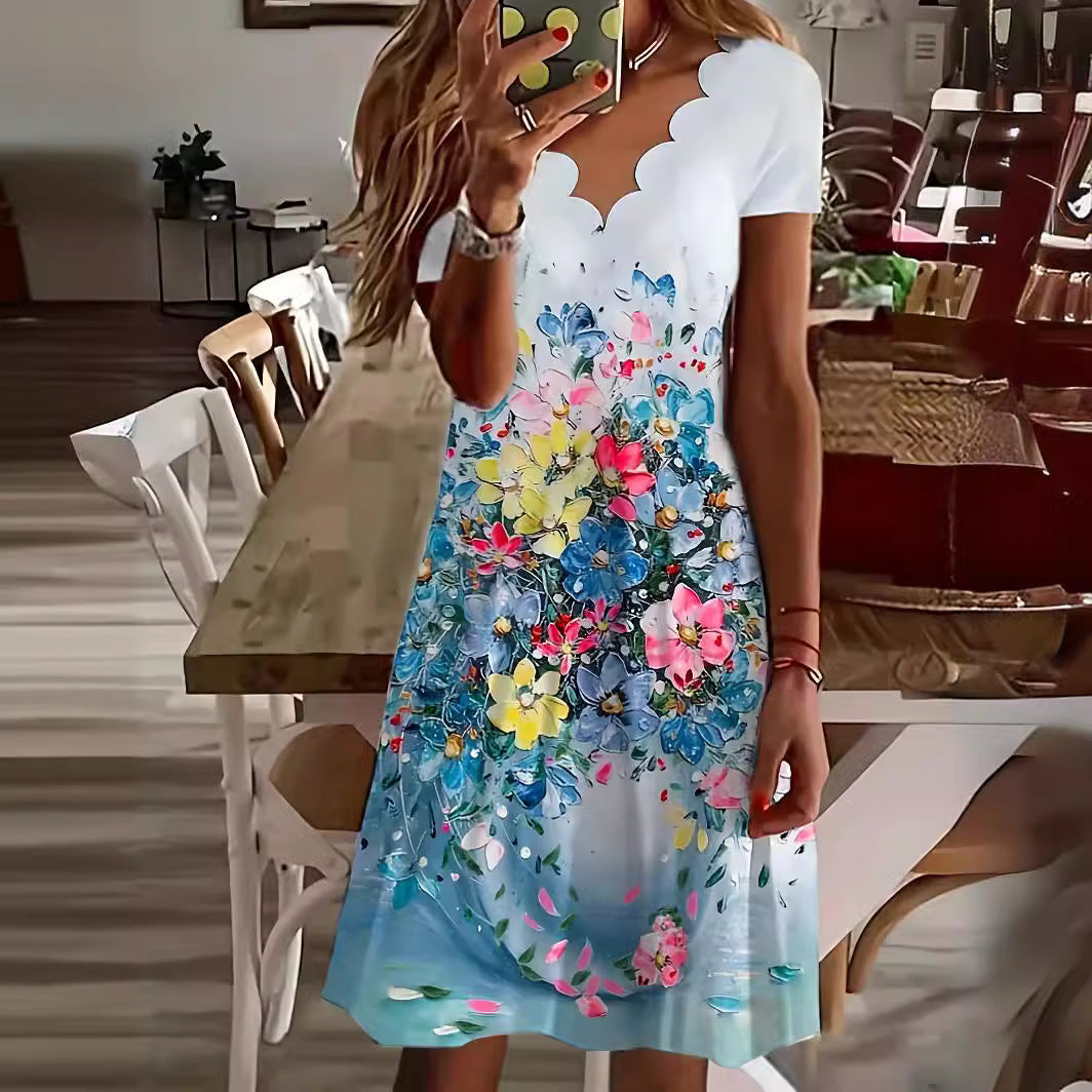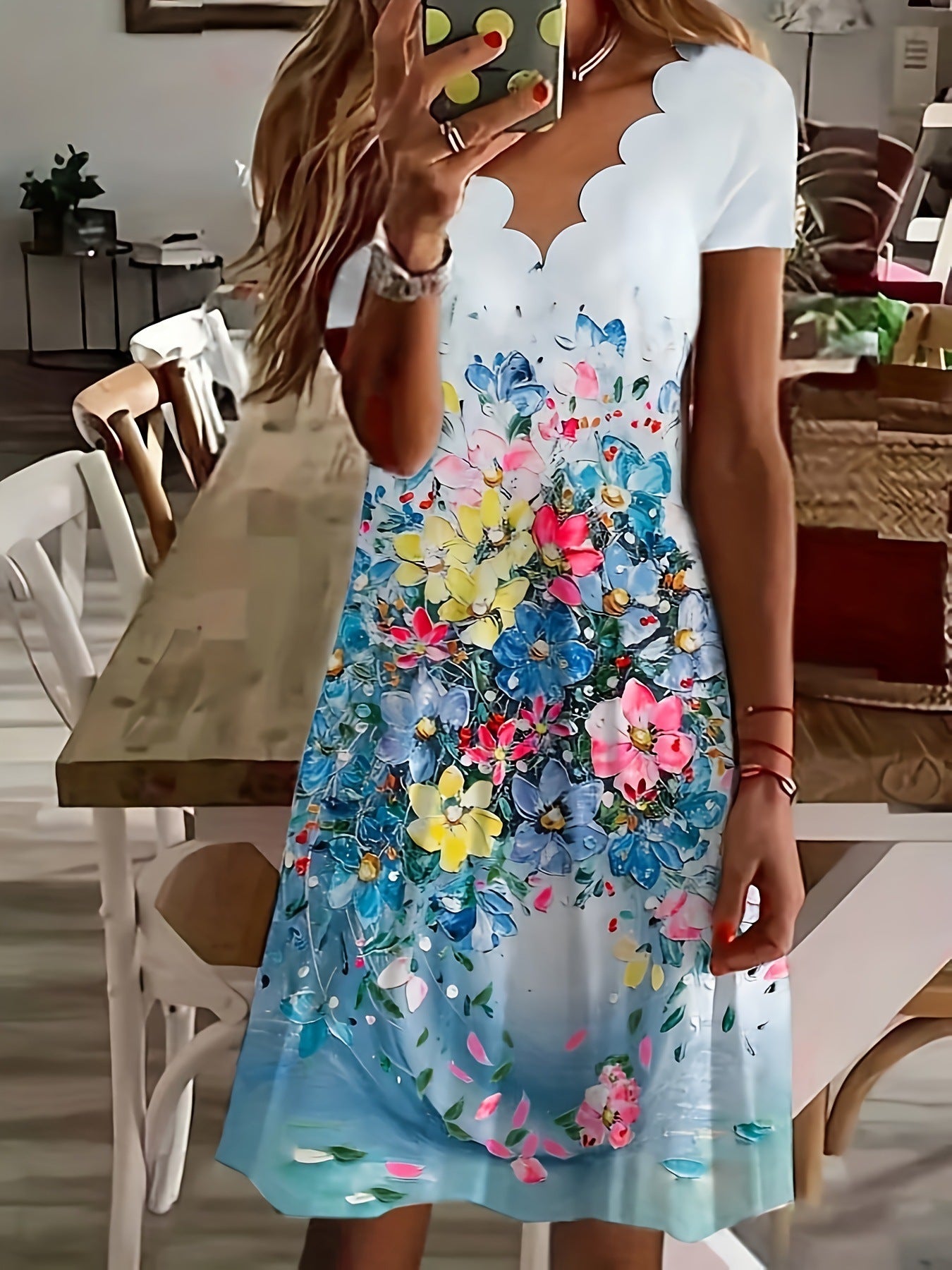 Showcase the beauty of nature: Women's floral dress with wavy neckline