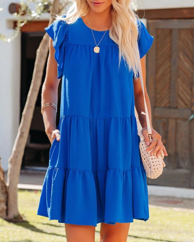 Conçue avec un tissu léger et respirant, cette robe mini permet des mouvements sans effort et est le choix idéal pour les temps chauds. Les douces manches à volants ajoutent une touche féminine, tandis que l'encolure ronde garantit un ajustement confortable.