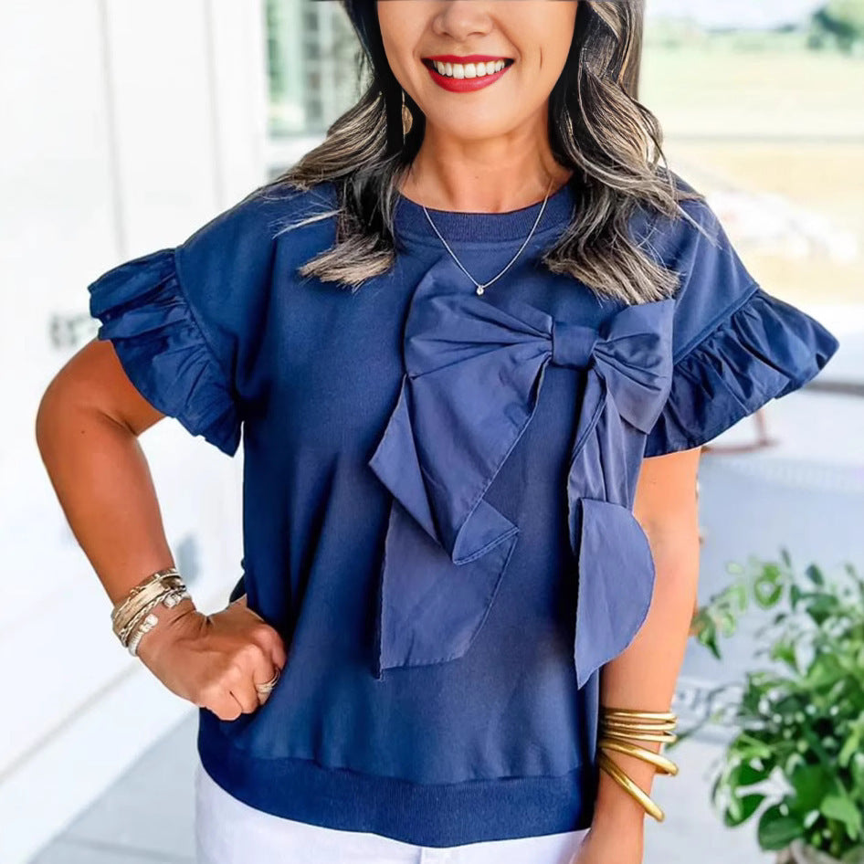 - Design élégant : Les manches à volants remarquables et le nœud surdimensionné créent une esthétique tendance, parfaite pour des occasions décontractées ou semi-formelles.