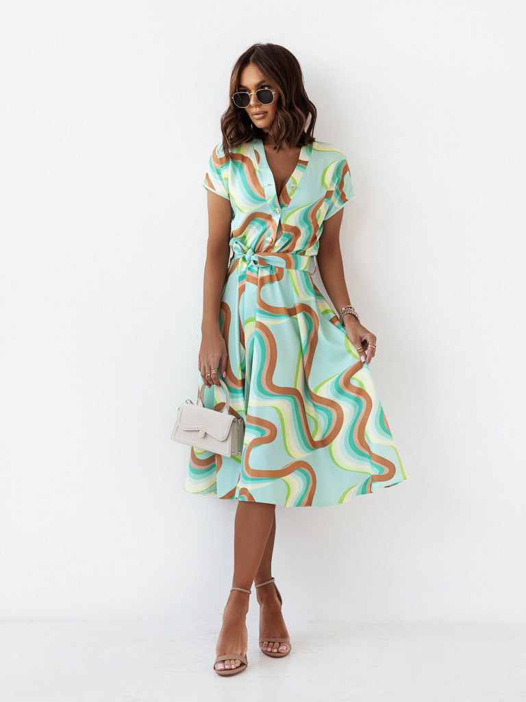 Dames Imprimé Tropical Robe Chemise Chic und Stil