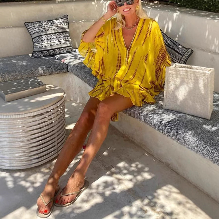 This chic and elegant women's ruffled mini dress is a must-have for your summer wardrobe and effortlessly combines style and comfort. Don't miss the opportunity to upgrade your summer fashion!