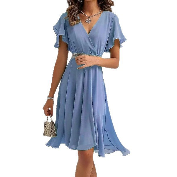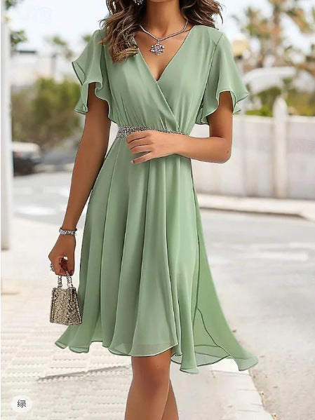 - Ourlet à volants flatteur : L'ourlet à volants ajoute une touche ludique, rendant cette robe idéale aussi bien pour des sorties décontractées que pour des occasions spéciales.