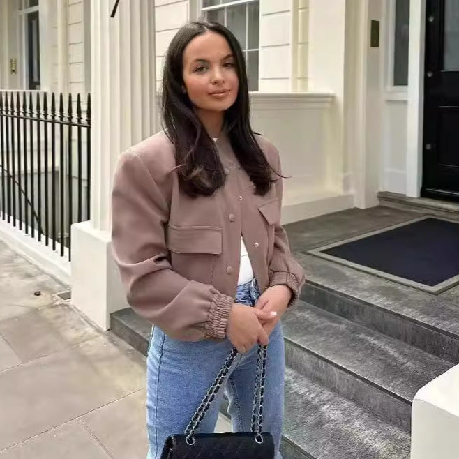 Casual cropped jacket for women with practical pockets and elastic hem Chic und Stil
