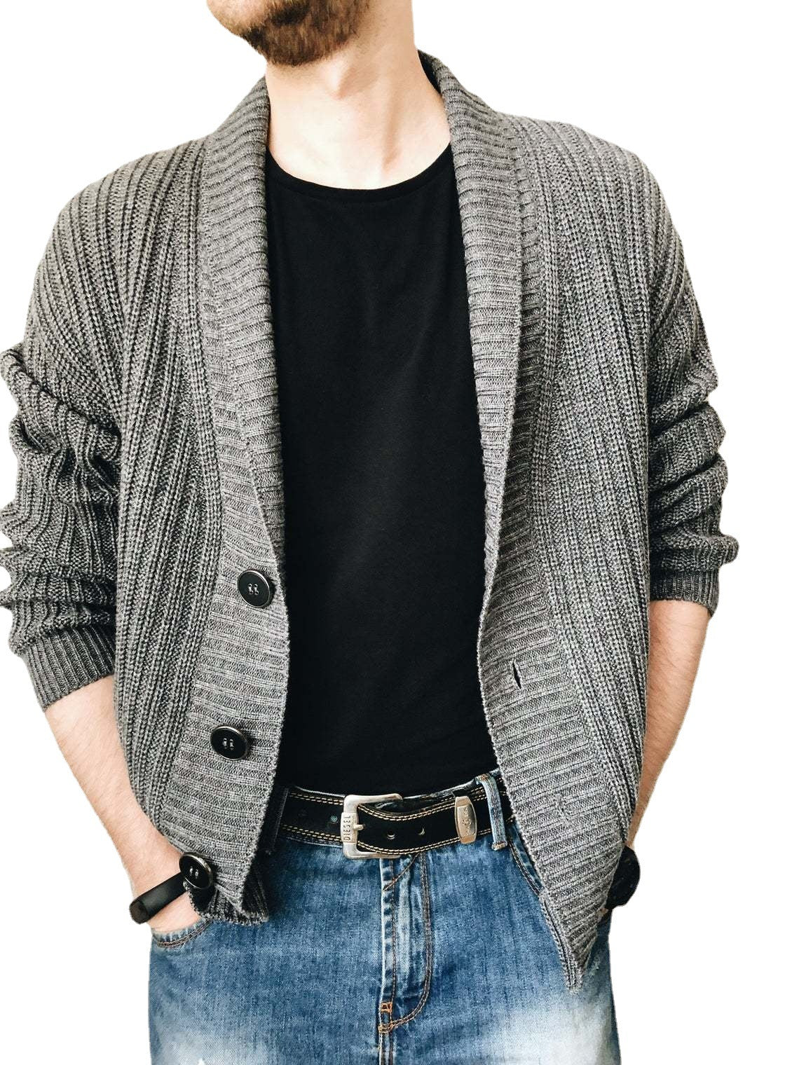 Men's knitted jacket with deep collar Chic and Style