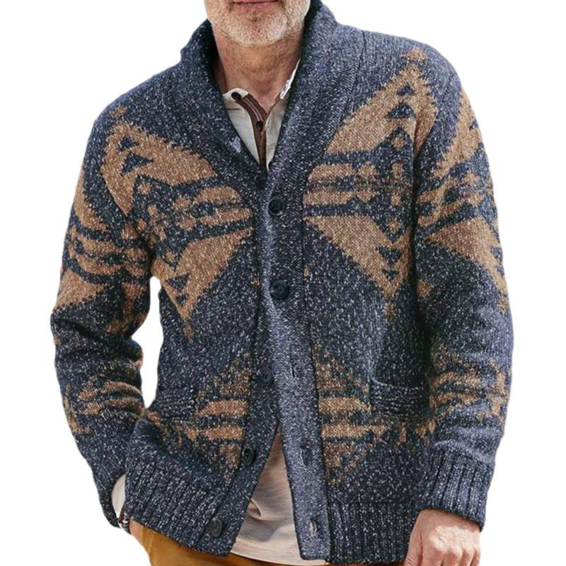 Men's knitted jacket with artistic pattern and practical pockets Chic and Style