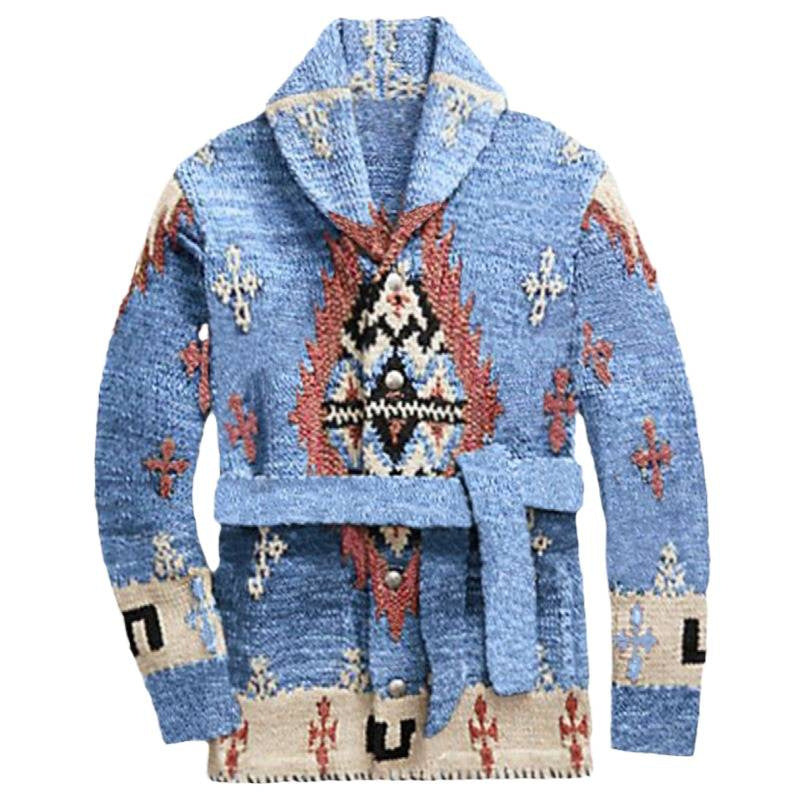 Comfortable knit coat for women with decorative pattern and practical belt Chic and Style