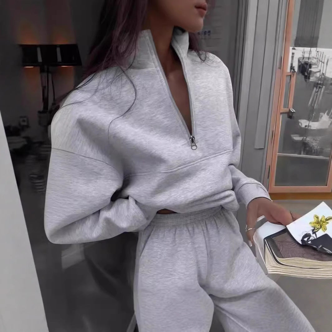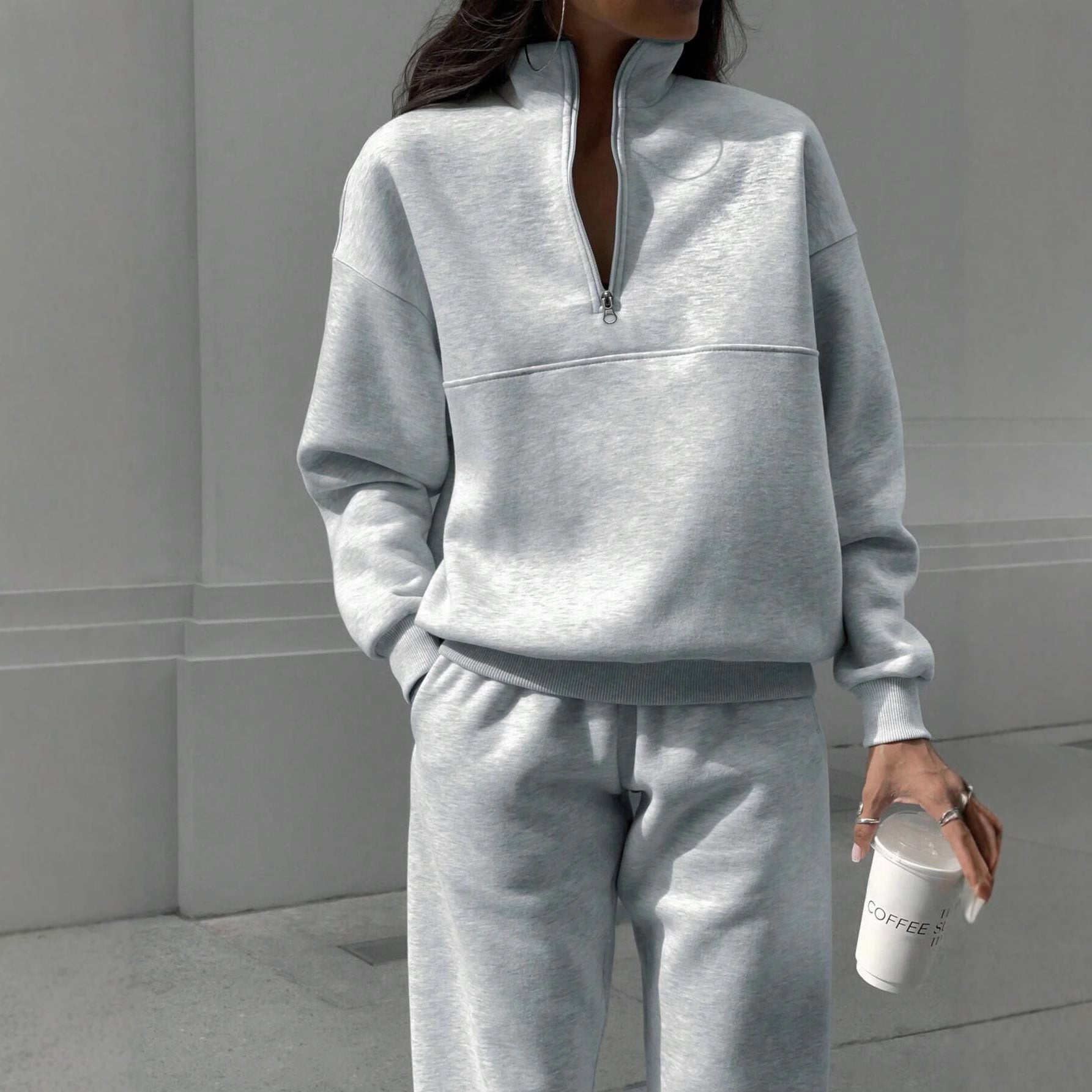 Comfortable Fleece Collar Sweater with Matching Jogging Pants
