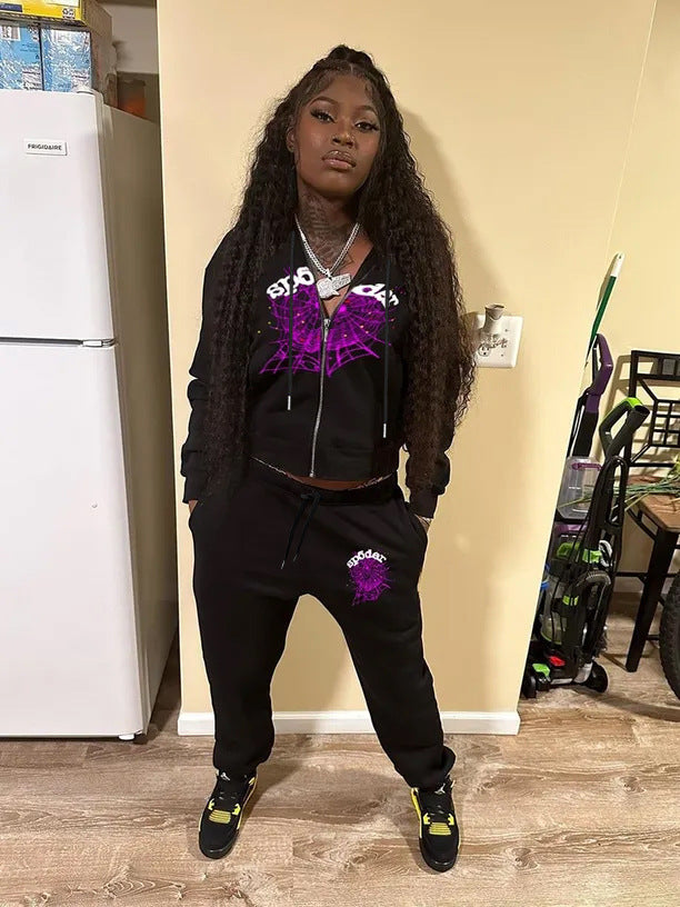 Hooded jacket and jogger pants set for women with a striking woven design Chic and Style