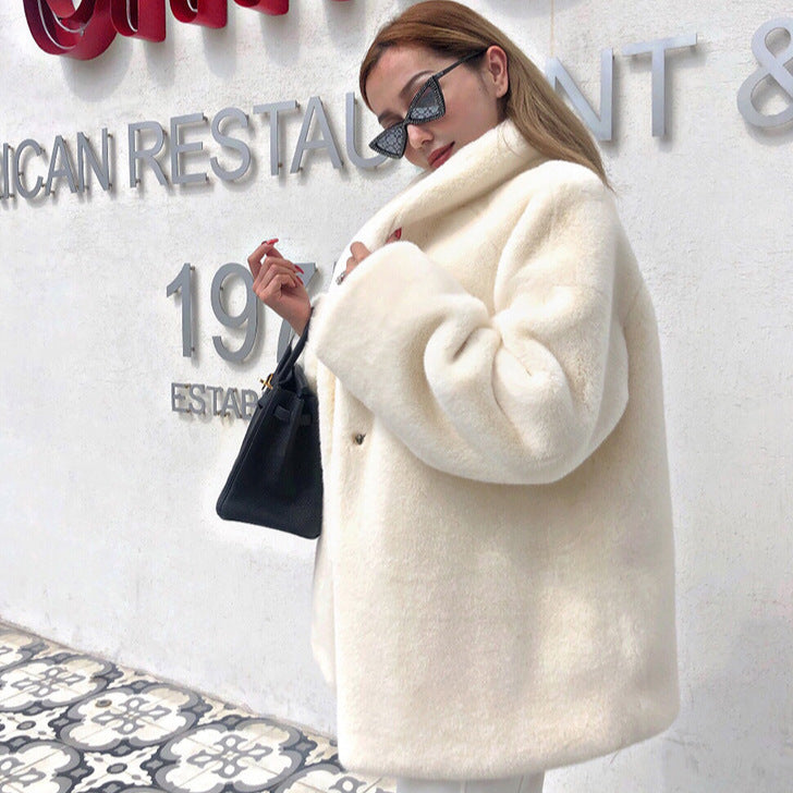 The jacket is made from high-quality, super-soft teddy velvet, which is not only pleasant against the skin but also offers excellent insulation properties. The relaxed and oversized fit ensures a comfortable wear and allows you to easily layer the jacket over your favorite outfits.