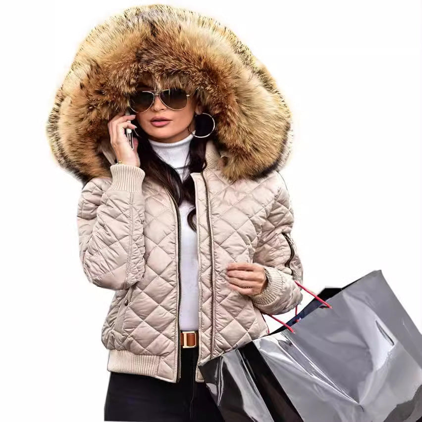 Ladies Urban Quilted Jacket with Soft Plush Collar Chic and Style